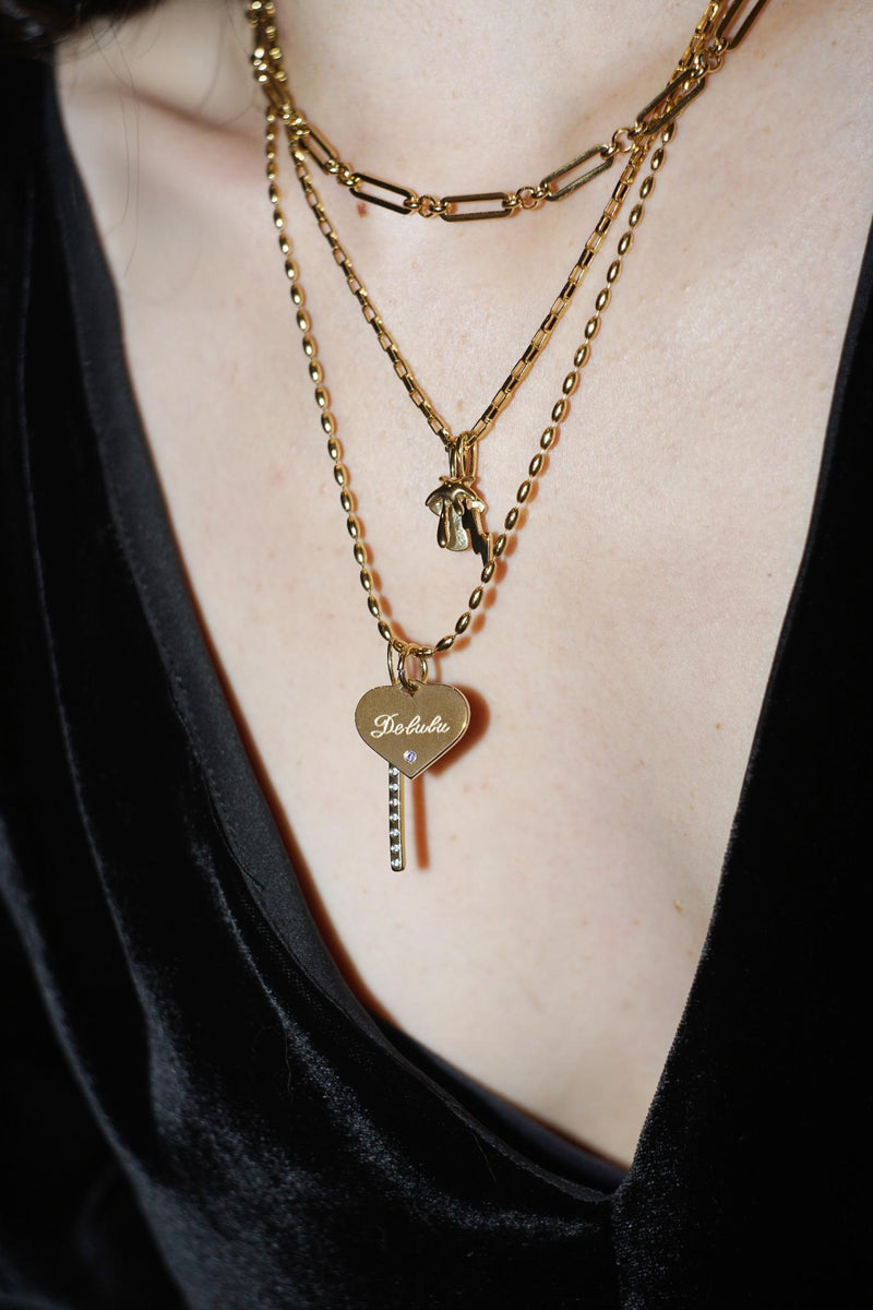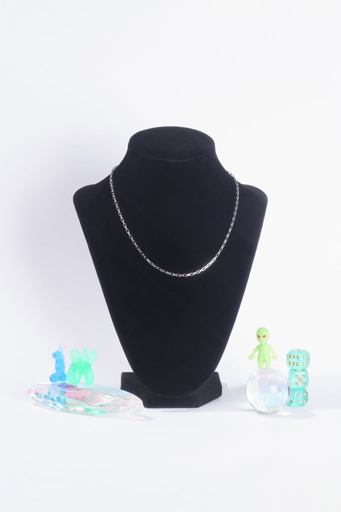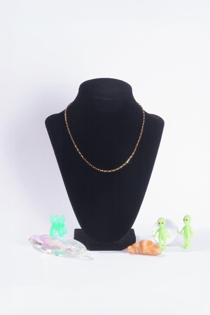 A hefty, sturdy little box chain with a vintage flair. Looks great layered. Go short or as long as 26" to carry all your flea market charms. Fits all of our pendants.