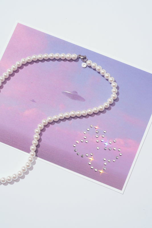 The Milky Way Strand is where our story begins again. With perfectly round, glossy 6mm glass pearls, this necklace is a nod to the piece that started it all. Available in three lengths — 16”, 18”, and 20”— it’s designed to drape effortlessly, whether you’re layering or letting it glimmer solo. It’s a piece that feels both rooted in tradition and ready for the now.