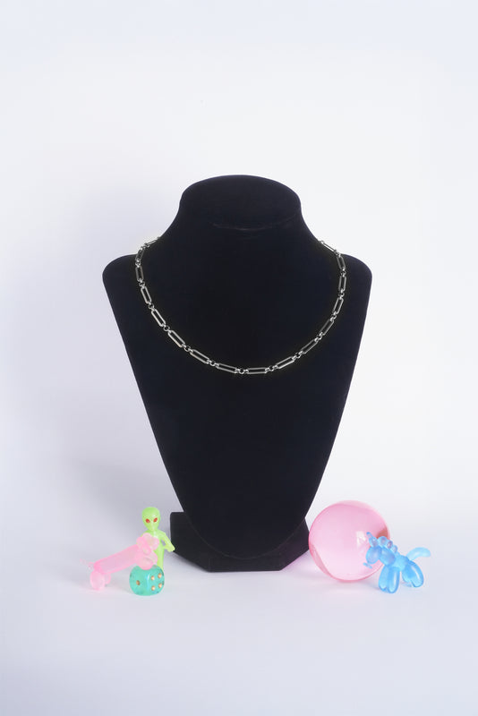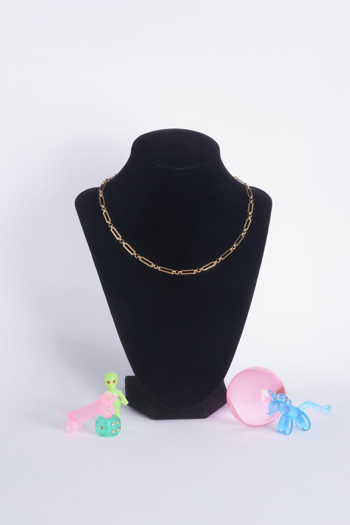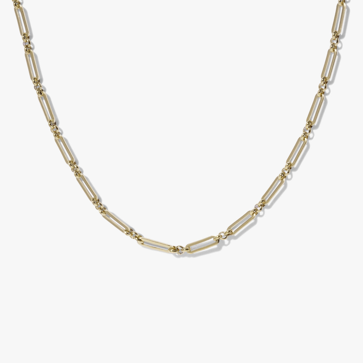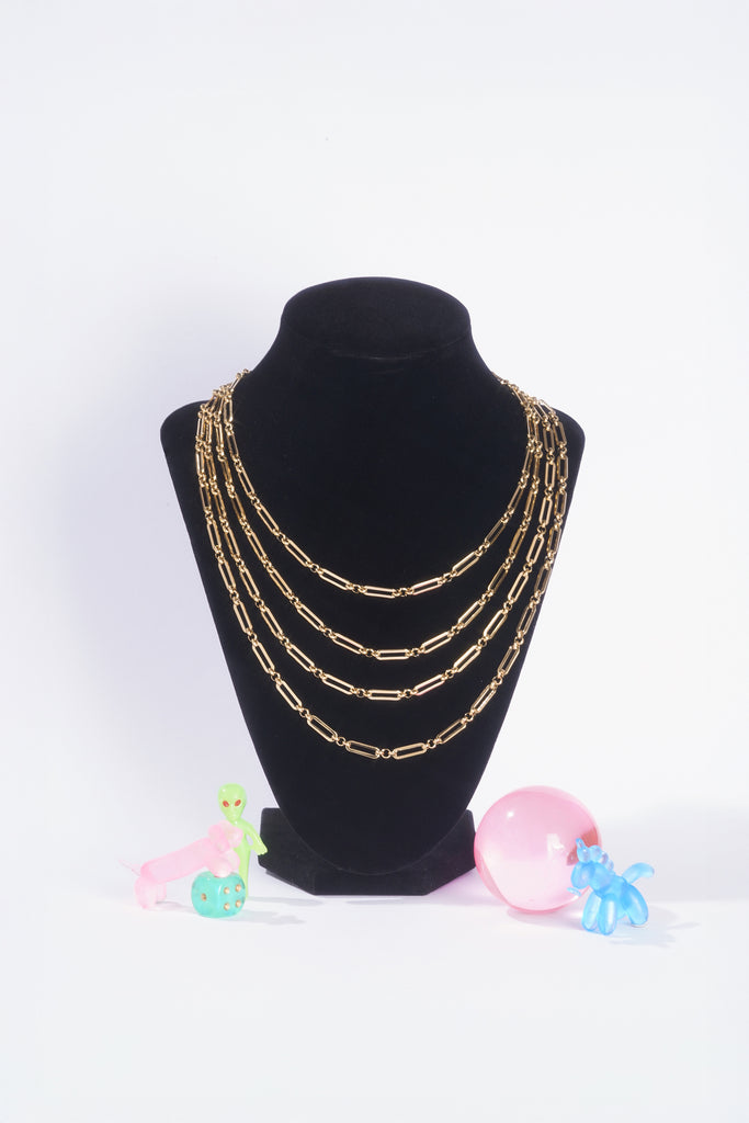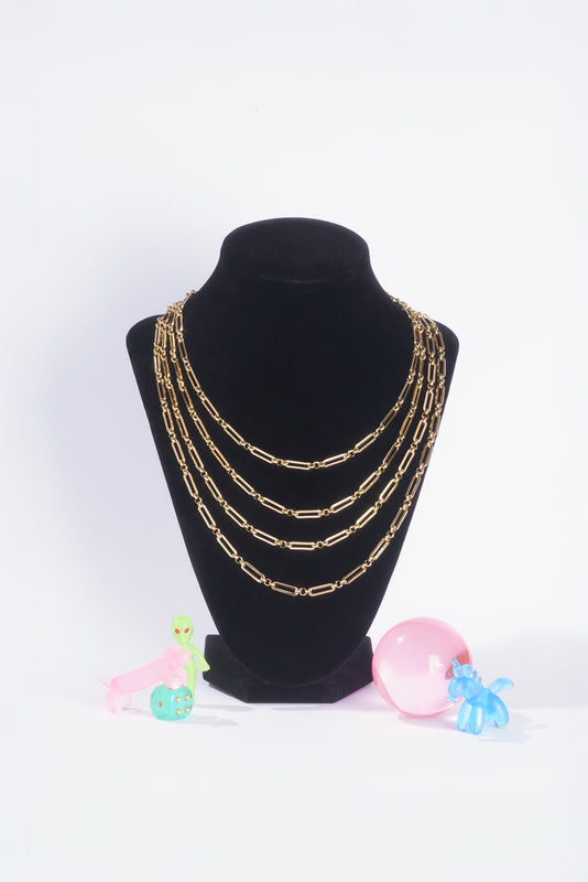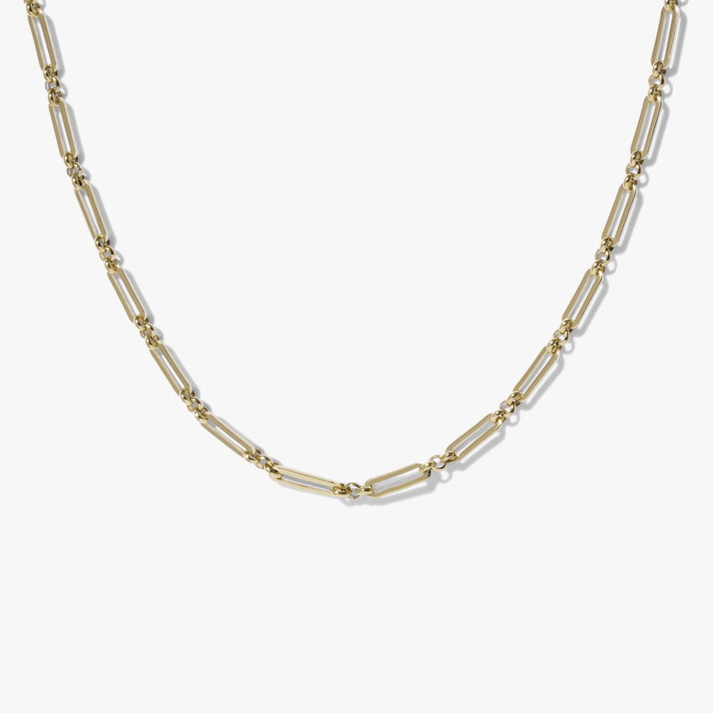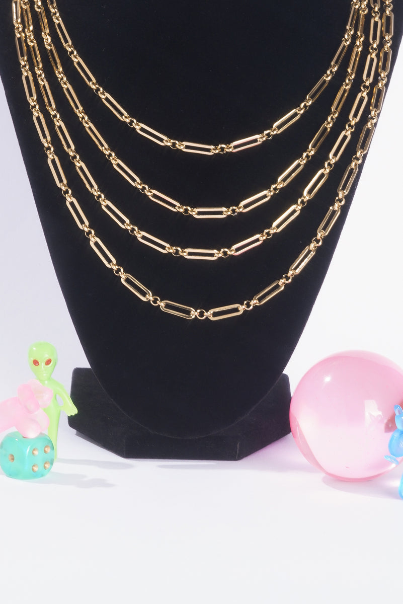 Bold oval-square links connected by three delicate rounds create an elegant contrast—structured yet fluid. Wear it alone as a statement piece or layer it as your shortest chain for maximum impact. Does NOT fit our pendants.