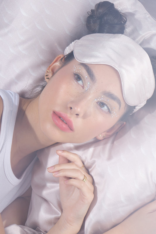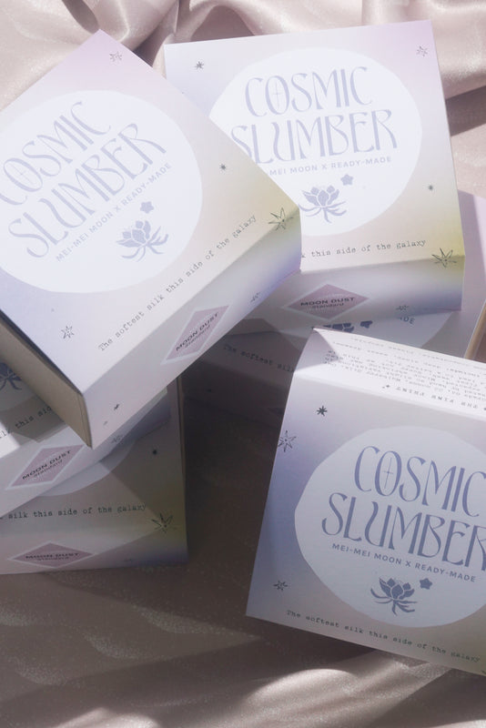 An exclusive print in collaboration with Mei-Mei Moon, this pillowcase redefines the meaning of beauty sleep. Featuring a dreamy, hand drawn Moon Dust patten by Mei-Mei Moon, it measures 20x27" (51x69cm) to fit Standard, Queen, Full, Twin and Twin XL size pillows. Enjoy the naturally restorative benefits of a 100% pure Mulberry silk pillowcase made with luxurious and ultra soft 100% Grade 6A 22 momme charmeuse. A soft and elegant envelope closure with elegant French seams holds your pillow in place (no pokey zippers, clasps or buttons!) Best of all? They’re machine-washable. Please note: silk accessories are Final Sale.