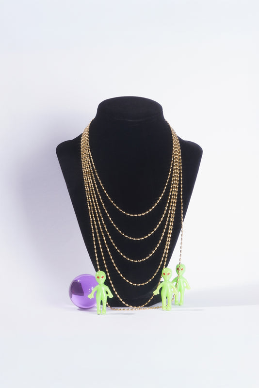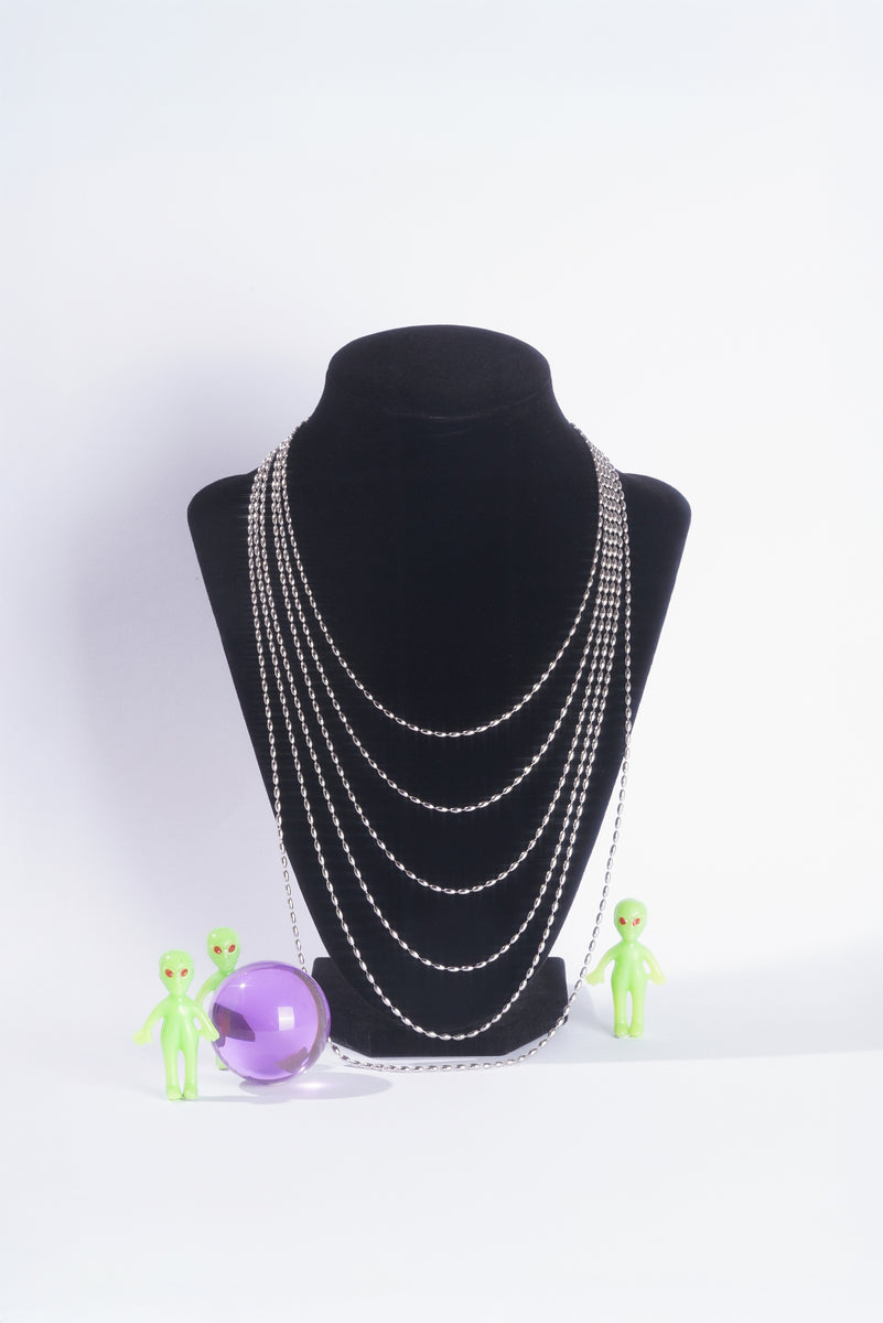 Cute and playful beaded chain. Dependable and strong, designed to carry all your charms like a string of whimsy. Wear it short like a choker, or extra long strung with beads, charms, and other sweet things. Fits all our pendants.